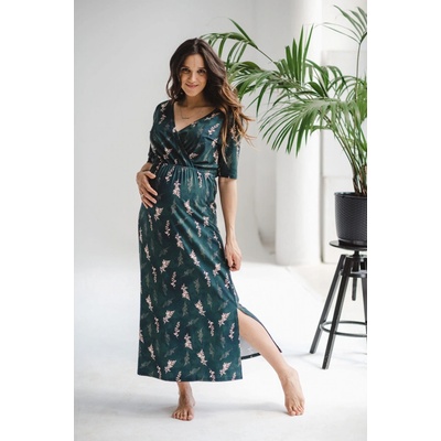 Dlouhé těhotenské letní šaty. Hlubší přeložený výstřih umožňuje pohodlné kojení.