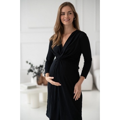 Elegantní těhotenské šaty s 7/8 rukávem z kvalitní viskózy. Uzlíkový přední detail zvýrazní těhotenské bříško.
