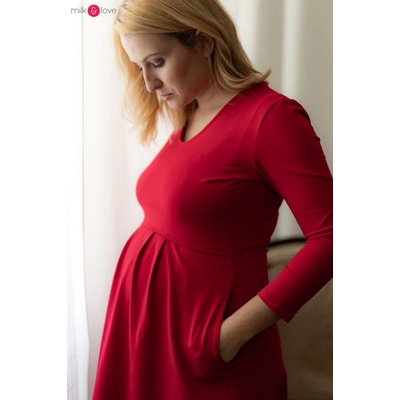 Stylové elegantní šaty pro těhotné a kojící ženy so 7/8 rukávem. Hlubší přeložený výstřih umožňuje pohodlné kojení.