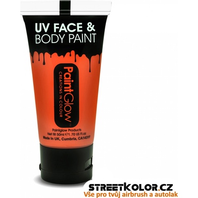 Fluorescentní Oranžová párty barva na tělo a obličej Vysoká kvalita Objem: 50ml Zdravotně nezávadný pigment určený na pokožku Netoxický, biologicky odbouratelný pigment Široké...