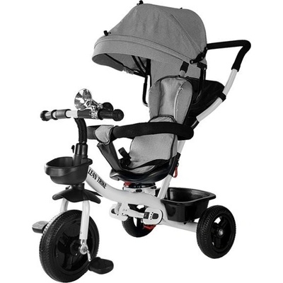 Tříkolka, na které se dítě může nechat vézt s nohama na opěrkách, šlapat naprázdno nebo jet zcela samostatně.