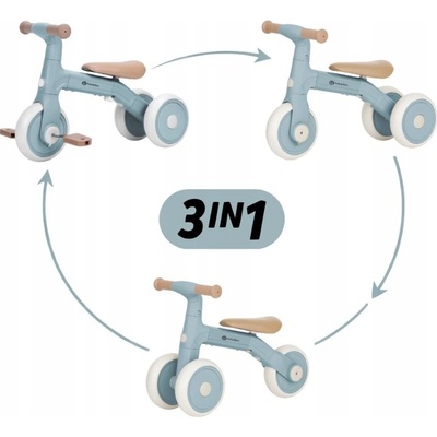 Odrážedlo a tříkolka se šlapky i bez v jednom. 1. Základní tříkolka bez pedálů 2. Tříkolka s pedály na předním kole 3. Jednoduché odrážedlo Byla navržena tak, aby se stala...