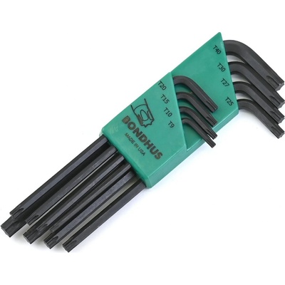 Sada torx L-klíčů 8ks T9-T40 Bondhus TLX 8 Sada klíčů TORX bez kuličky. rozměry: T9, T10, T15, T20, T25, T27, T30, T40 materiál: ocel Protanium (až o 20% pevnější než běžné...
