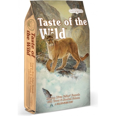 Taste of the Wild canyon river feline 7kg Kompletní krmivo pro kočky všech plemen a všeho věku. (ALL LIVE STAGES) Složení: Pstruh, rybí moučka, batáty, brambory, protein z hrachu, bramborová bílkovina, řepkový olej, uzený losos, přírodní aroma, cholin chlorid,...