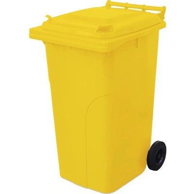 Mobilní plastové nádoby - popelnice, kolečka pro snadnou manipulaci, snadná údržba a čištění. Vhodné pro venkovní i vnitřní použití - materiál HDPE (vysokohustotní polyetylen), barva kontejneru žlutá. Fotografie popelnic jsou pouze ilustrační.