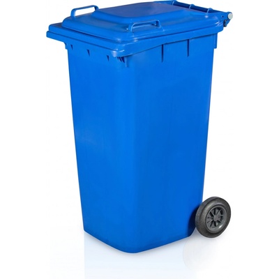 Mobilní plastové nádoby - popelnice, kolečka pro snadnou manipulaci, snadná údržba a čištění. Vhodné pro venkovní i vnitřní použití - materiál HDPE (vysokohustotní polyetylen), barva kontejneru modrá. Fotografie popelnic jsou pouze ilustrační.