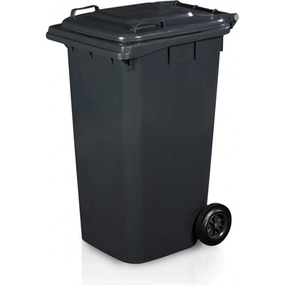 Mobilní plastové nádoby - popelnice, kolečka pro snadnou manipulaci, snadná údržba a čištění. Vhodné pro venkovní i vnitřní použití - materiál HDPE (vysokohustotní polyetylen), barva kontejneru tmavě šedá. Fotografie popelnic jsou pouze ilustrační.