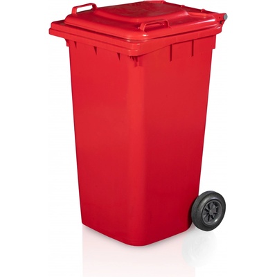 Plastová popelnice 240l, červená mobilní plastová popelnice 240losazená dvěma kolečky pro snadnou manipulacijednoduchá údržba a čištěnívhodná pro venkovní i vnitřní použitívyrobena z HDPE (vysokohustotní polyetylen)nosnost 80 kg