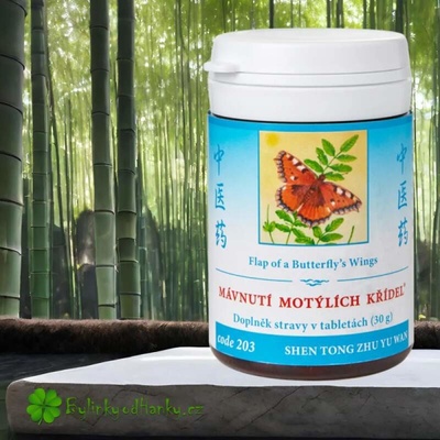 Mávnutí motýlích křídel je bylinná směs tradiční čínské medicíny ve formě tablet od společnosti TCM Herbs. Více informací o směsi Mávnutí motýlích křídel se dozvíte ve veřejně dostupných zdrojích, jako např.: www.cinskyherbar.cz nebo www.tcmencyklopedie.cz