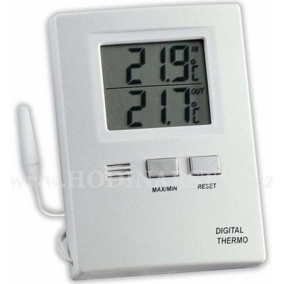 Digitální teploměr TFA 30.1012 s kabelovým čidlem měří vnitřní i venkovní teplotu, zaznamenává minimální a maximální teploty do své vnitřní paměti. Vlastnosti přístroje: Velké,...