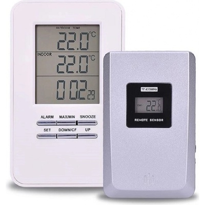 "- možno postavit na pevnou podložku, např. na skříňku nebo na stůl a to díky rozkládacímu stojánku - měření vnější teploty pomocí kabelu se senzorem - délka kabelu 150 cm -...