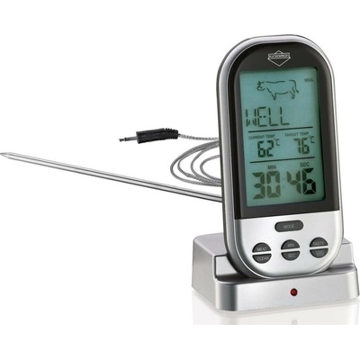 Digitální teploměr s bezdrátovým signálem v kovové konstrukci s plastovými prvky. Alarm hlásí dosažení žádané teploty. Navíc nabízí časovač a stopky. Pevný stojánek je součástí....