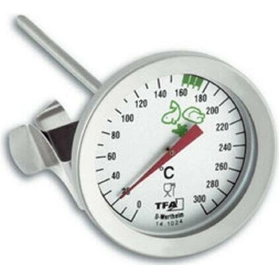 Analogový vpichovací teploměr Tento teploměr je určen k měření teploty tuku při fritování, teploty vody při zavařování, vnitřní teploty v troubě, teploty v udírně nebo teploty v...