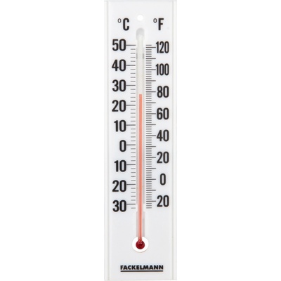 Fackelmann teploměr má délku 19,5 cm a je vyroben z plastu. Může měřit teploty od - 30 °C do + 50 °C nebo - 20 ° až + 120 °F. Teploměr je kapilárně naplněný petrolejem a má...