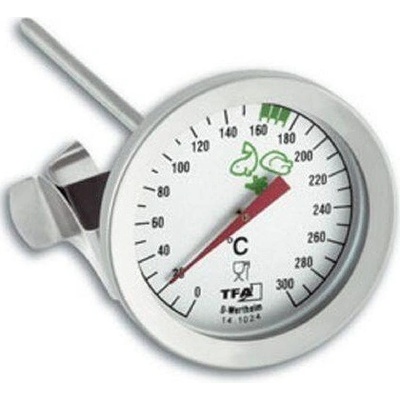 rozměry: pr. 51 x 60 x 162 mm rozsah měření teploty: 0 °C až +300 °C hmotnost: 43 g materiál: nerez ocel s klipem Vpichovací teploměr je určen nejen k měření teploty tuku při...