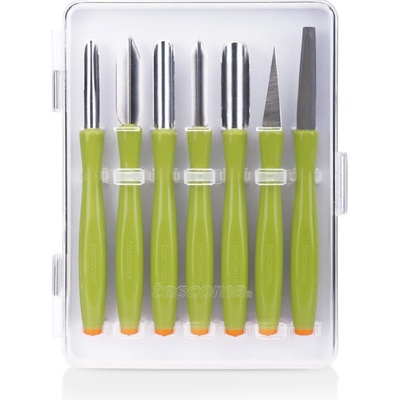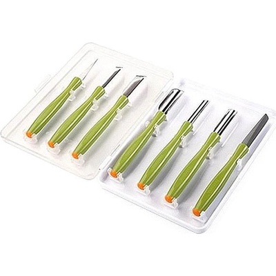 Univerzální souprava vynikající pro dekorování zeleniny a ovoce – mrkve, bílé ředkve a ředkviček, okurek, cuket, pórku, dýně, jablek, hrušek, manga, melounů apod. Souprava...