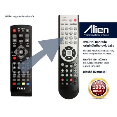 Dálkový ovladac TESLA TE-300 Kvalitní náhradní dálkové ovládání jiného vzhledu pro DVB-T2 príjímac Tesla. Pod znackou ALIEN získáte kvalitní a levnou náhradu originálního...