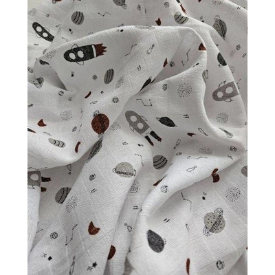 PREM Bavlněná tetra osuška Vesmír Látkové osušky s potiskem vesmírných raket a planet maminky hojně využívají při koupání novorozenců a batolat. Bavlněné osušky jsou extra...