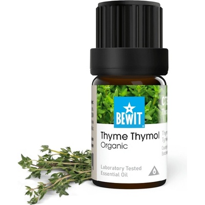 Bewit Tymián (chemotype thymol) 5 ml - objevte mimořádně povzbuzující účinky tymiánu, jehož nápadná, typicky kořeněná vůně ve vás posílí odvahu a morálku. Využijete jej i v kuchyni. Vůně: svěží, výrazná, bylinná s kořeněnými tóny. Známý také jako: tymián obecný, tymián...