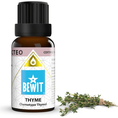 Bewit Tymián (chemotype thymol) 5 ml - objevte mimořádně povzbuzující účinky tymiánu, jehož nápadná, typicky kořeněná vůně ve vás posílí odvahu a morálku. Využijete jej...