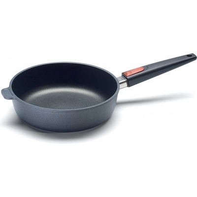 Pánev s nepřilnavým povrchem a odnímatelnou rukojetí od německého výrobce WOLL, kolekce Nowo Titanium. Vyrobeno z tvrzené hliníkové slitiny, odolný nepřilnavý povrch.