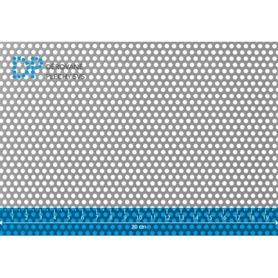 Děrovaný plech hliníkový, čtvercové řadové děrování Qg 8-12 mm. Rozměr 1000x2000 mm. Tloušťka plechu 2 mm. Vyrobeno dle DIN 24 041. Jakost Al 99,5 % - čistý hliník. Hmotnost...