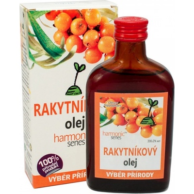 Rakytníkový olej 100% 200ml Za studena lisovaný, první lis. Rakytníkový olej vyniká vysokým obsahem polynenasycených mastných kyselin. Rakytník posiluje srdeční systém,...