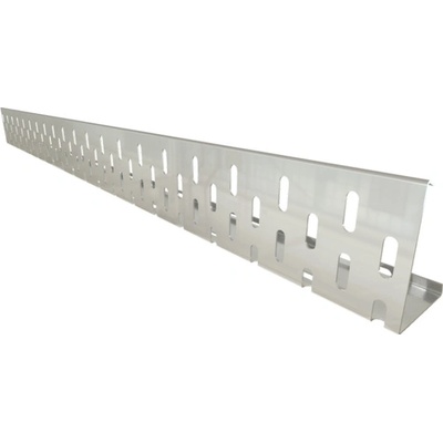 Kačírková a okrajová lišta pro střechy s přitěžující vrstvou kačírku a ukončení profilu dlažby. Materiál: hliník tloušťky 1,5 mm, délka lišty 2000 mm. Lišta má po 250 mm otvory pro provlečení přířezu všech druhů hydroizolace. Tuhost lišty je zajištěna ohybem 10 mm na...