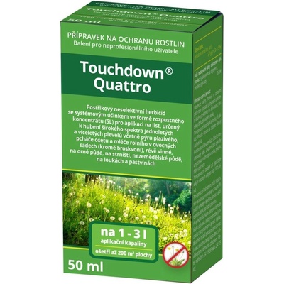 Touchdown Quattro je herbicid obsahující účinnou látku glyphosate, která se přijímá listy. Složení: Účinnou látkou v tomto přípravku je glyphosate, což je systémový...