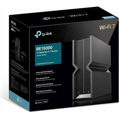 Třípásmový Wi-Fi 7 router BE15000 Třípásmová Wi-Fi s bleskovou rychlostí 15 Gb/s: Wi-Fi 7 naplno využívá potenciál pásma 6 GHz s kanály až 320 MHz a rychlostí Wi-Fi 11,5 Gb/s....