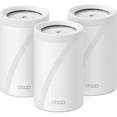 3 jednotky WiFi Mesh systému Deco poskytující pokrytí signálem WiFi 5 až 510 m2 (všechny 3 jednotky). Možnost zvýšení pokrytí připojením dalších jednotek, snadná konfigurace v mobilní aplikaci.