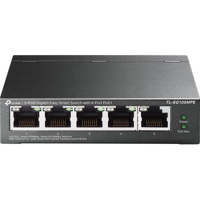 TP-Link TL-SG105MPE 5portový Gigabit Easy Smart Switch se 4 porty PoE+ Přepínač nabízí 5 GbE RJ-45 portů, z nichž 4 podporují PoE+ (802.3 af/at), a celkový rozpočtový výkon je...