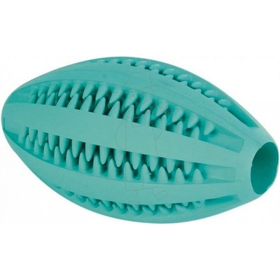 Rugby míč Trixie Dentafun s mátovou příchutí. Hračka je určena pro pejsky a je vyrobena z odolné měkké přírodní gumy, která vydrží i silnější stisk. Míč slouží preventivně...