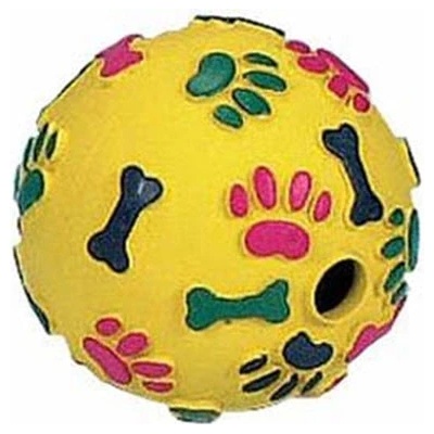 Míč na pamlsky pro středního psa TRIXIE (ø 11 cm) Plnitelný míček Trixie s motivem kostí a tlapek - to je oblíbená hračka pro psy od německého výrobce. Otvor míčku je...