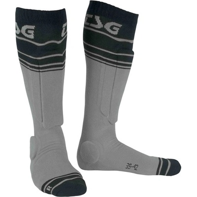 Chrániče integrované do pohodlí podkolenky. Holenní kost chrání měkká pěna rozdělená na 3 části, další pěnové polštářky chrání kotníky.
