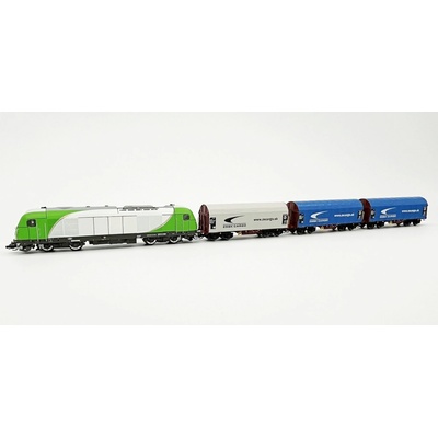 Sada pro začátečníky se vším, co je třeba ke vstupu do světa železnic TT. Sada obsahuje lokomotivu Traxx a 3 nákladní vozy s kovovými koly. Ovál kolejiva s podložím, transformátor a ovladač. Výroba ukončena, neváhejte s koupí.