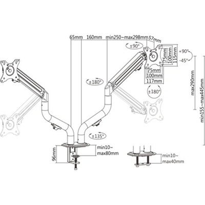 Stolní dlouhé rameno pro monitory 13" - 32". Zatížení (na 1 rameno) 8 kg. VESA 75x75, 100x100. Barva černá.