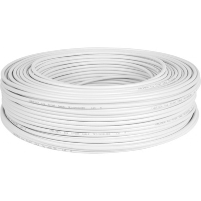 TV koaxialní kabel 75 Ohm (CCS), 100dB; 2x stíněný, cívka 100m - pro vnitřní instalace - vnitřní vodič 1.1mm (CCS) - bílá barva - univerzální kabel pro TV - pěnové...
