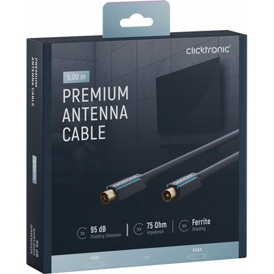 ClickTronic HQ OFC anténní propojovací kabel M/F 75 Ohm, ferrity, 5m Televizní příjem bez zkreslení a šumů je otázkou správné volby materiálů. Koaxiální kabel je speciélně...