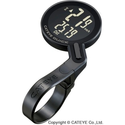 Computer Cateye Quick (RS100W) černá 7 funkcí: denní vzdálenost celková vzdálenost okamžitá rychlost průměrná rychlost maximální rychlost čas jízdy hodiny doplňkové funkce: aut. funkce START / STOP, funkce Pacer - indikátor (šipky) poměřující okamžitou a průměrnou...
