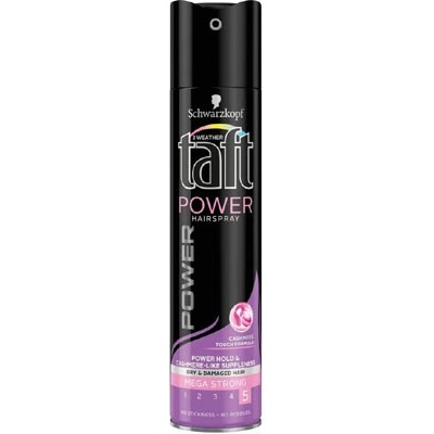 Taft Power Cashmere lak na vlasy mega silná fixace díky své receptuře 3 Weather Taft vaše vlasy účinně chrání proti větru, vlhkosti a UV paprsky.