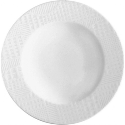 Hluboký porcelánový talíř kulatého tvaru s vlnitým okrajem. Materiál: porcelán. Rozměry: pr. 24 cm, v. 4,2 cm. Lze mýt v myčce i použít v MVT.