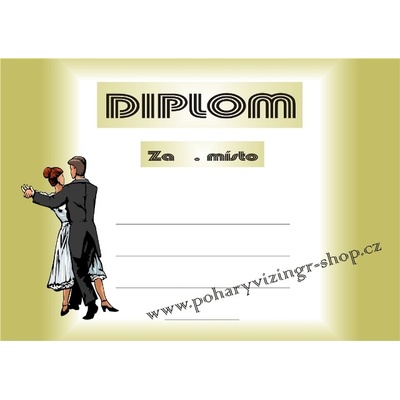 Diplom pro tanec o velikosti A4. Pro Sportovní ceny Gladiator vytvořil designér Ondřej Čada. Za příplatek 5 Kč je možné do diplomu vepsat text dle požadavků. Požadovaný text,...