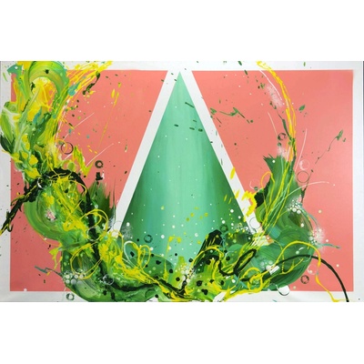 Prodej abstraktně malovaného obrazu na plátně. Obraz Tanec štěstí je jako výbuch radosti uprostřed našeho života. Jeho pozadí v odstínech meruňkovo-růžové evokuje teplo a...