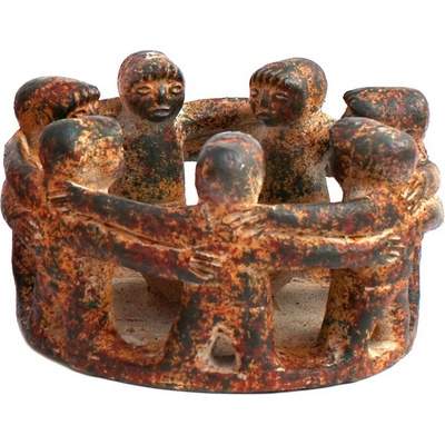 Velký kouzelný svícen na čajovou či jinou menší svíčku, který v sobě propojuje praktické využití a starodávný obraz pospolitosti a vzájemné pomoci. Svícen ručně vyrobili z...