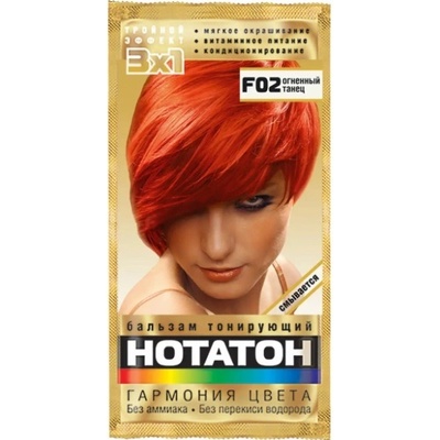 Tónovací balzám na vlasy 30ml NOTATON F02 Ohnivý tanec Trojitý efekt: jemné zbarvení, vitaminová výživa a kondicionování. Bez amoniaku a peroxidu vodíku. ...