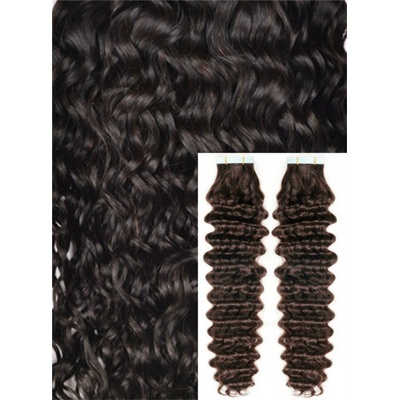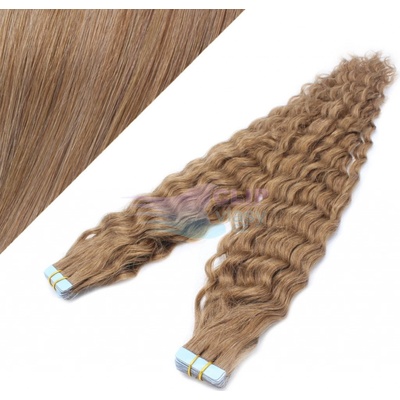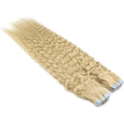 Kudrnaté Tape in pásky ze 100% lidských vlasů k šetrnému zahuštění a prodloužení vlasů.