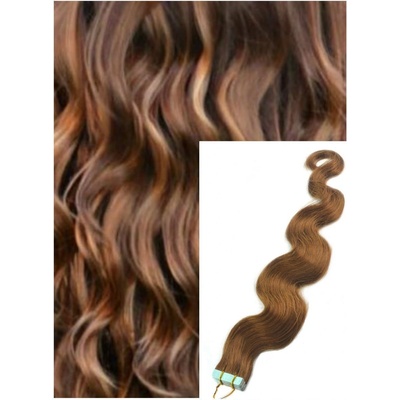 Tape in pásky ze 100% lidských vlasů k šetrnému zahuštění a prodloužení vlasů.