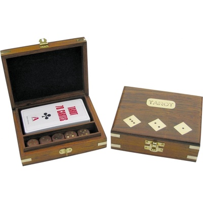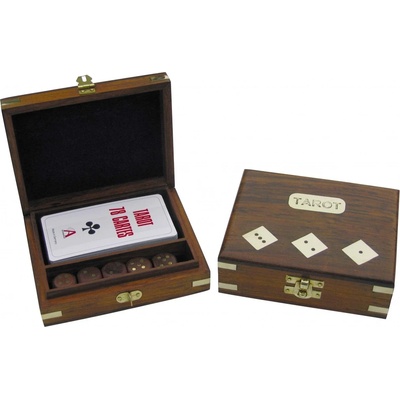 Tarotové hrací karty a kostky v dárkovém boxu balíček tarotových karet a sada hracích kostek v dárkovém dřevěném boxu TIP na skvělý dárek! rozměr: 14.5 * 12.4 *...