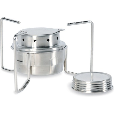 Tatonka Burner set z nerez oceli s alkoholovým vařičem, regulátorem výšky plamene a stabilním stojanem. Manuální zapalování, objem nádržky 120 ml, doba vaření 40 min..